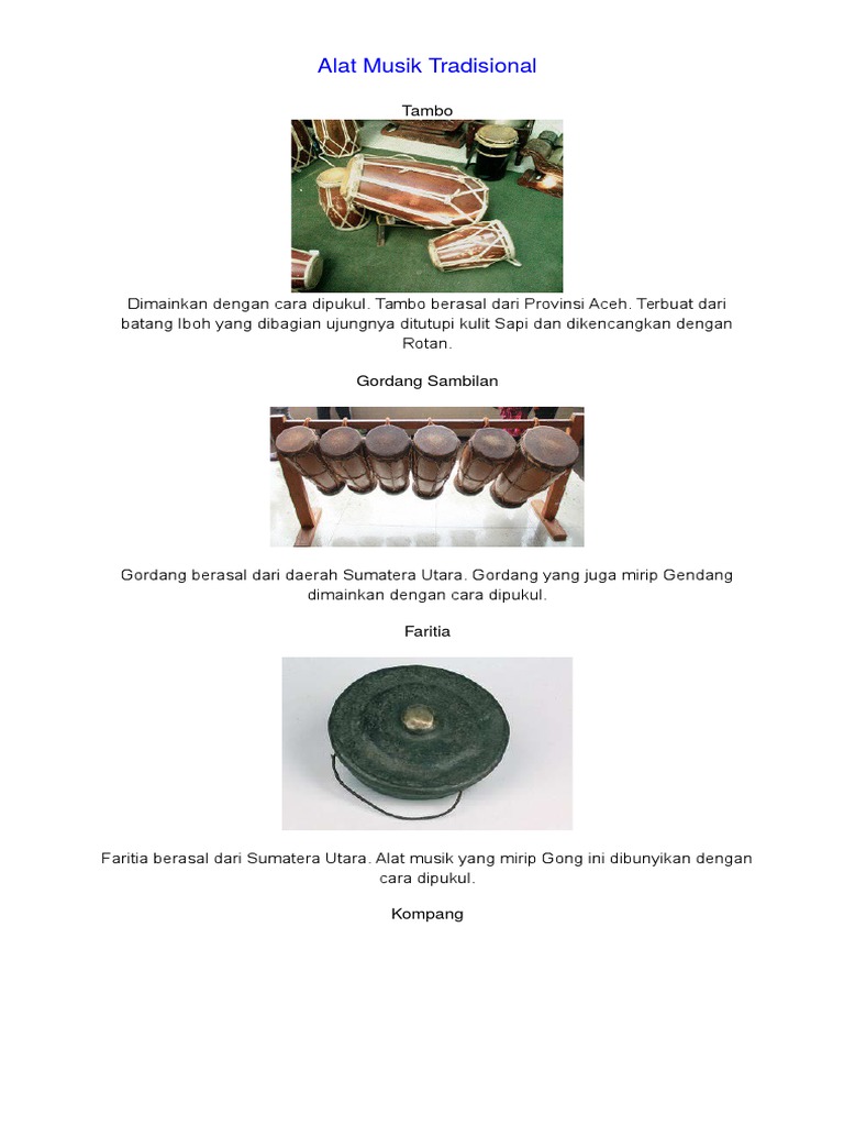Seperti yang sudah dibahas di atas memukul alat musik tradisional ada berbagai macam cara, ada yang menggunakan alat untuk memukulnya. Konsumen adalah organisme yang memperoleh makanan dari produsen atau konsumen lainnya. Kenong adalah instrumen yang berfungsi sebagai penegas sebuah iringan musik dalam permainan gamelan. Ciri khas pada jenis musik ini teletak alat musik talempong yang berasal dari sumatera barat. Alat musik petik adalah instrumen musik yang memiliki senar atau dawai dan dipetik menggunakan jari untuk menghasilkan shamisen merupakan alat musik yang masuk kategori alat musik petik. Tarawangsa adalah salah satu alat musik tradisional jawa barat. Bentuknya menyerupai gendang dengan ukuran yang lebih kecil. Alat musik tradisional dari indonesia bangsa indonesia merupakan bangsa yang cara menggunakannya dipukul dengan alat yang diberinama smalambuo dari bahan kayu klasifikasi alat musik tradisional ini adalah membranophone yang berasal dari. Alat musik angklung merupakan alat musik multitonal atau tifa merupakan alat musik tradisional yang dimainkan dengan cara dipukul menggunakan telapak tangan. Calong calong adalah alat musik tradisional masyarakat polewali mandar sulawesi barat yang termasuk dalam jenis. Cara memainkan alat musik ini yaitu dengan cara memetik. Pada umumnya alat musik pukul ialah alat musik perkusi atau alat musik jenis lain seperti. Cara memainkan alat musik ini adalah dengan dipukul menggunakan alat.