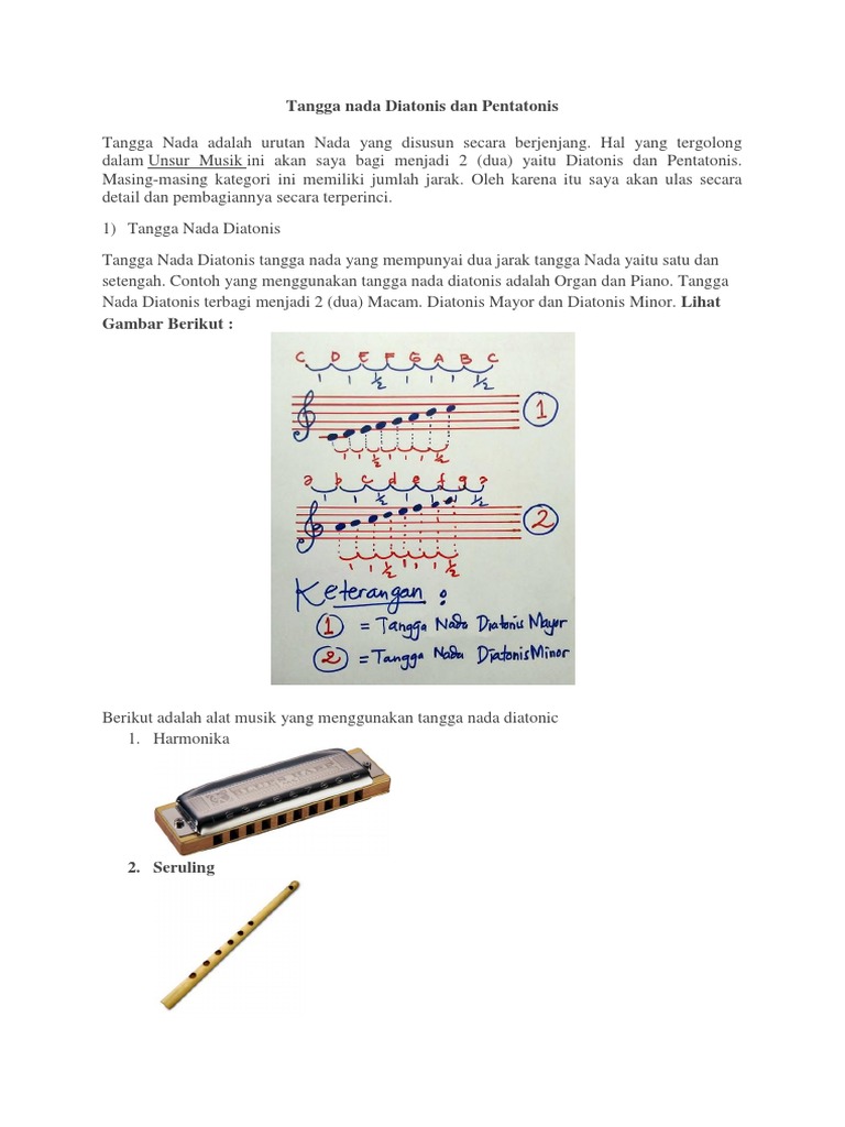 Alat musik yang menggunakan tangga nada diatonis adalah piano. Gambang keromong wikipedia bahasa indonesia ensiklopedia bebas. 4 suling adalah alat musik dari keluarga alat musik tiup kayu atau terbuat dari bambu. Tapi, menciptakan musik nggak hanya memainkan alat musik secara random. Contoh alat musik jenis ini adalah sebagai berikut